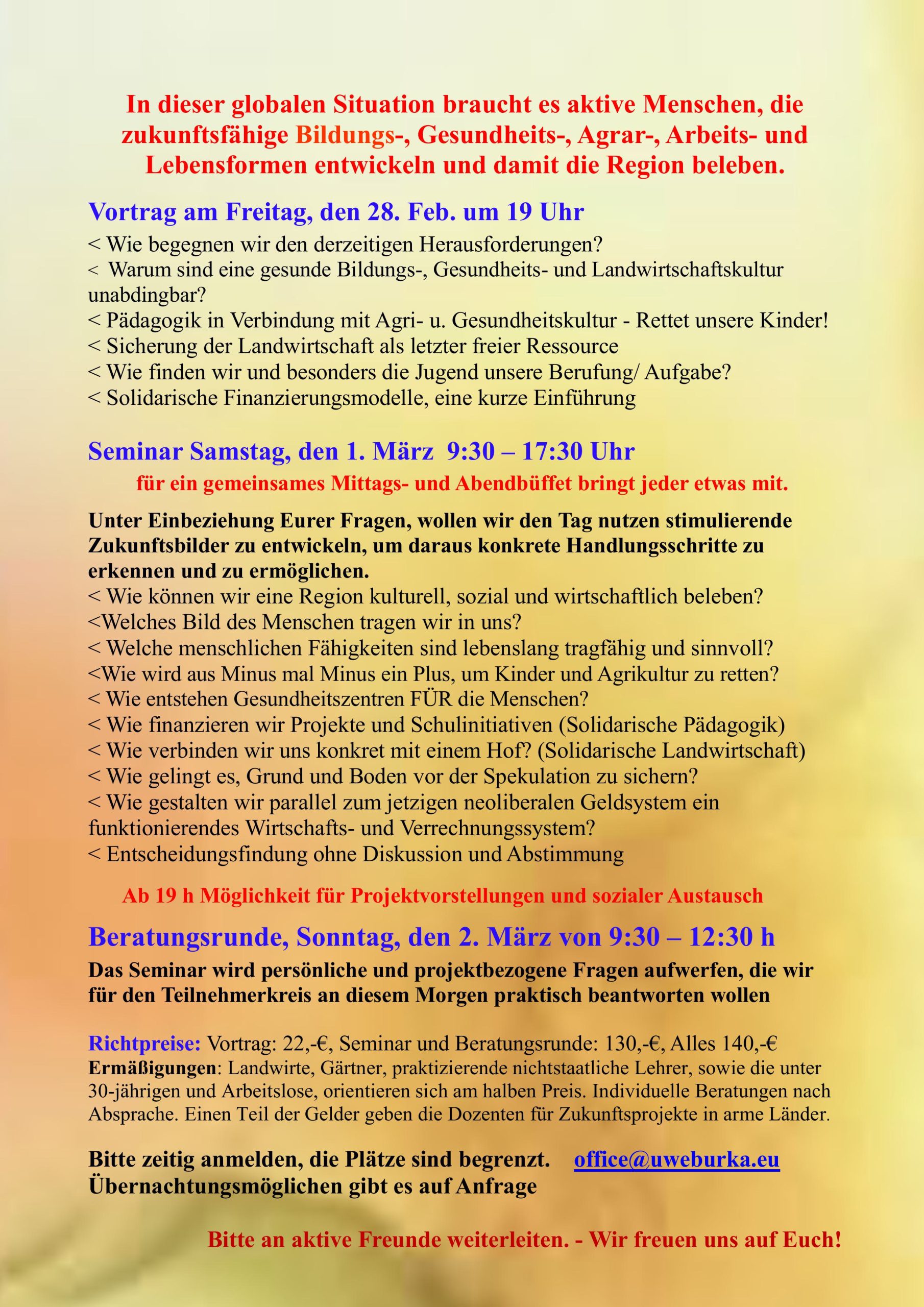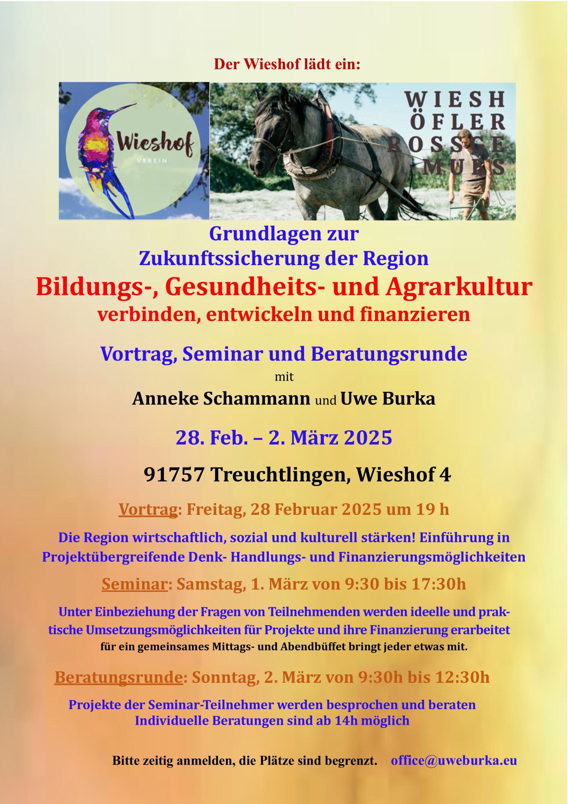 Bildungs-, Gesundheits- und Agrarkultur – Vortrag und Seminar 28. Feb 2025 Datum/Zeit 28.02.25 - 02.03.25 Kategorien Keine Kategorien