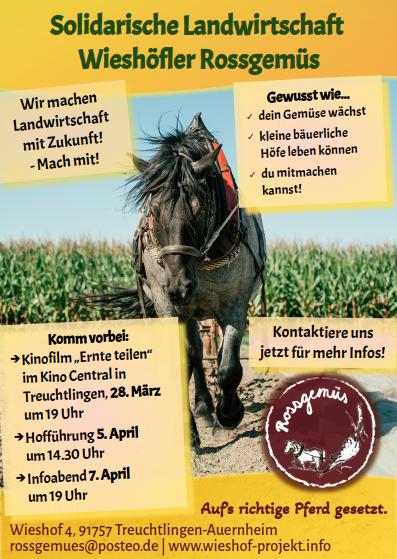 Infoabend zur SoLaWi 7. Apr 2025 Datum/Zeit 07.04.2519:00 - 21:00 Kategorien Keine Kategorien Ihr wollt Teil der SoLaWi werden? Oder überlegt, ob SoLaWi was für euch ist? Kommt zu unserem Infoabend. Wir stellen euch unser Konzept vor und beantworten alle eure Fragen.